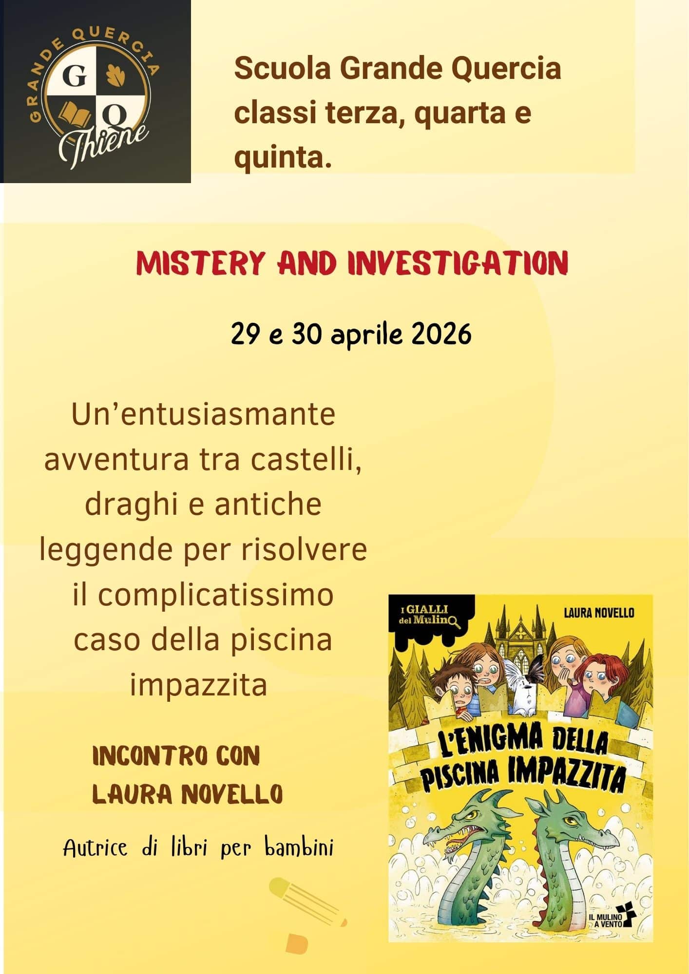 Nei giorni 28, 29, 30 aprile sarò a Thiene in provincia di Vicenza, per incontrare i bambini della Scuola Grande Quercia, scuola primaria e secondaria di primo grado.